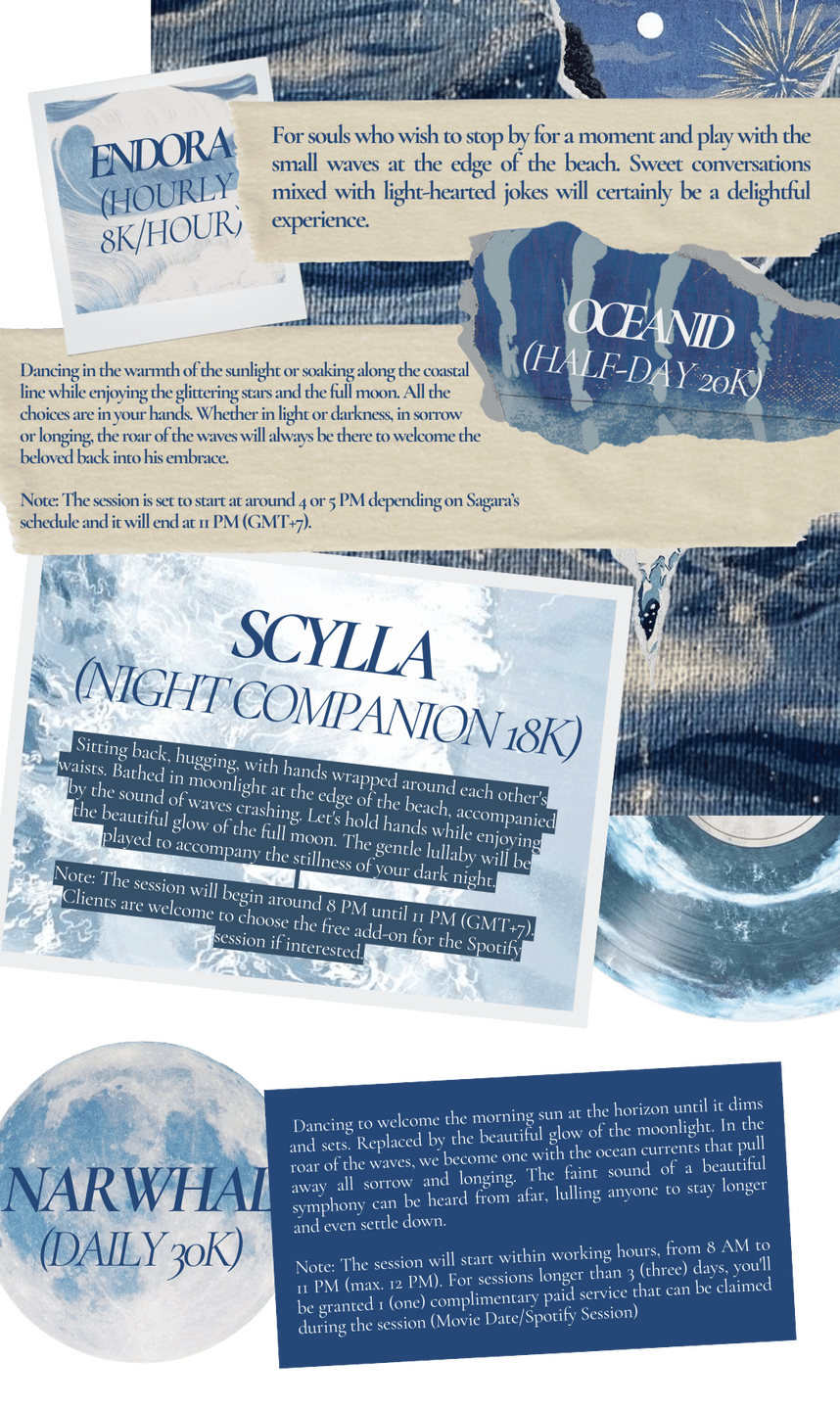 I. Sagara is someone who greatly respects privacy and boundaries. Please be very mindful of each other's privacy and limits.II. Services are only available for cyber accounts (CA), business accounts (BA), and fan accounts (FA). Personal accounts (PA) are strictly forbidden to use the services.III. Working hours are from 8 AM to 11 PM (GMT+7).IV. Lover companion services are only available for those aged 21 and above. Please be honest about this.V. Services are available on three platforms: Twitter, Telegram, and KakaoTalk. Sagara exclusively serves one client per session across all packages.VI. Everything that happens in the session is confidential and should be kept between the two parties involved, except for PDA content, which is allowed to be shared with consent first.VII. Loyalty is a principle that is held firmly. Therefore, it is expected that clients are not in any romantic relationship of any status, whether real, virtual, or otherwise.VIII. The minimum reservation for hourly sessions is 2 (two) hours and 1 (one) day for daily reservations. The maximum reservation for hourly sessions is 4 (four) hours and 5 (five) days for daily reservations. Re-renting daily sessions is allowed with a gap of at least 3 (three) days from the last session.IX. Although Sagara does not provide VN/OTP services at the moment, clients are allowed to send photos/VNs in conversation with prior consent without disclosing personal information. Please do not force Sagara to do the same gesture.X. If Sagara disappears for approximately 3 (three) hours without clear permission, clients are expected to contact the manager immediately. If the client disappears without further notice, the session will continue without any additional time.XI. All reservations, discussions, and payments are handled through the manager as the contact representative. Direct contact with Sagara is only for emergencies and urgent cases.XII. Sagara has the right to return unclear forms or even reject forms if unable to fulfill the requested service.XIII. Refunds are not possible unless Sagara is unable to conduct the session. Rescheduling is recommended with a minimum confirmation of two days in advance.XIV. The magic spell that we forget is Siren.XV. Sometimes, stronger feelings may arise before or after a session. However, Sagara is not responsible and cannot reciprocate these feelings.XVI. Sagara reserves the right to unilaterally terminate the service with or without a refund if there is a violation of the agreed regulations.XVII. First-time clients meeting Sagara are required to fill out a padlet and provide a review after the session ends. Returning clients are not required to do so, but it is highly appreciated if they do.